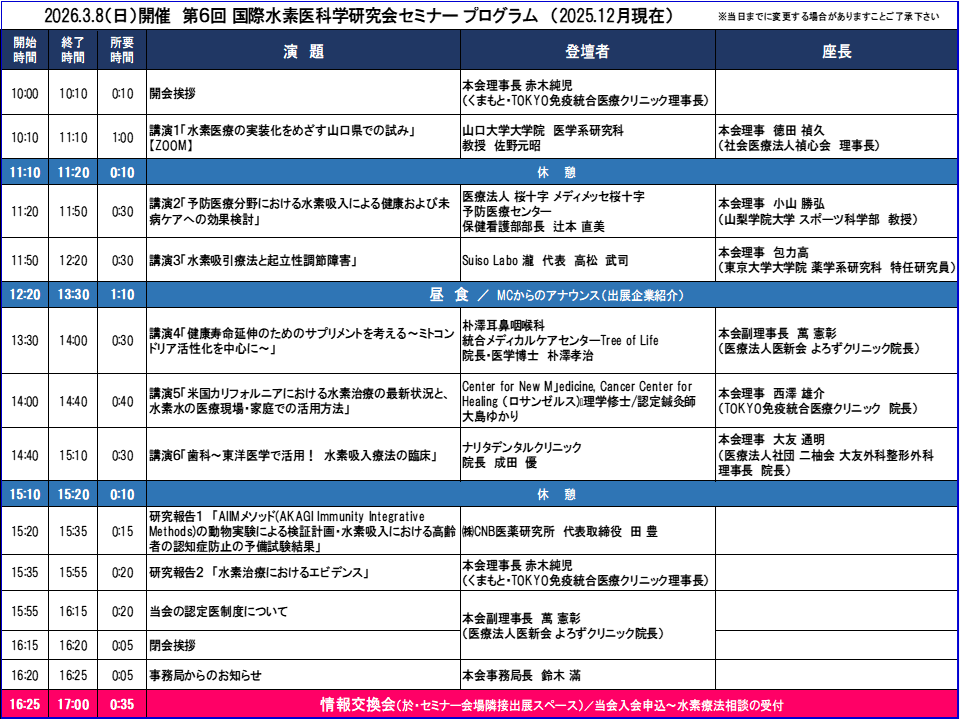 第6回国際水素医科学研究会セミナーご案内パンフレット